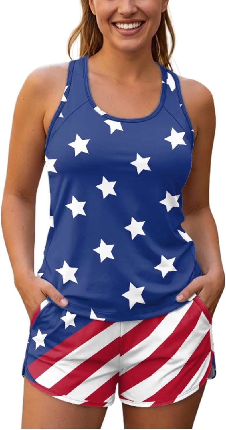 Elevate your summer wardrobe with our versatile two piece sporty tankini swimsuit, crafted from lightweight, stretch fabric that delivers breathable, all-day comfort whether you're playing beach volleyball or lounging poolside. Choose from vibrant designs, including our flag-inspired print, tropical palm patterns, and stars & stripes styles—each blending sporty functionality with eye-catching vacation flair. Ideal for water sports, pool parties, tropical cruises, spring break getaways, and resort stays, this bathing suit also makes a thoughtful gift for the adventure-loving woman in your life.
