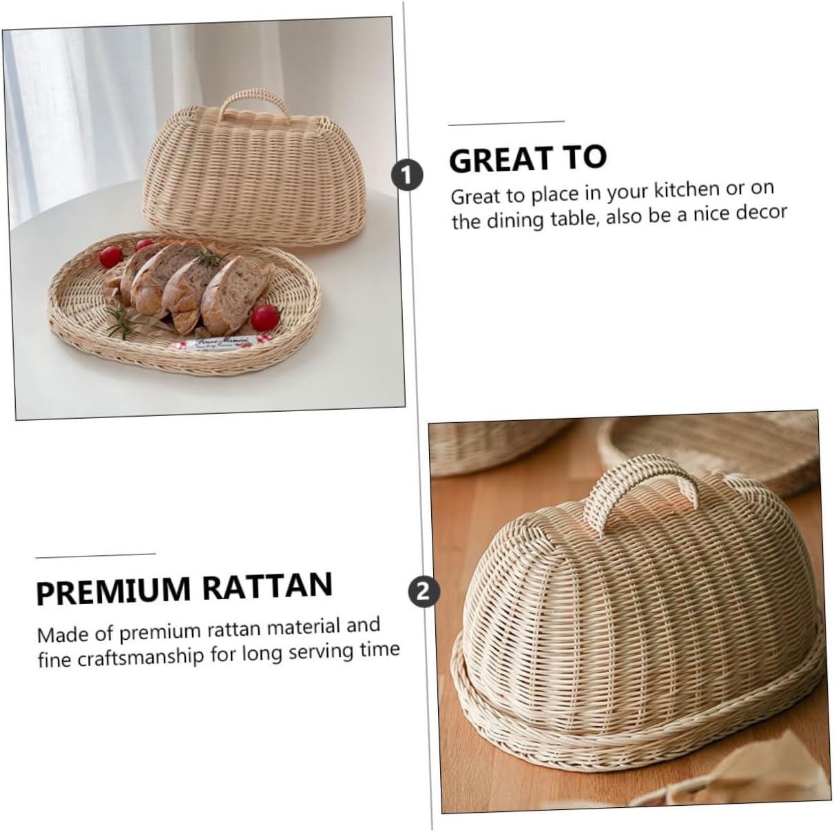 Package List 1 x Set of Food Cover with Tray Features - Color: Khaki Kitchen Supplies. - Material: Rattan rattan dome food cover. - Size: 35.00X27.00X18.50cm/13.76X10.61X7.27inch dome rattan cover. -Product Info:Rattan food cover - Simple design, simple but not monotonous, using excellent materials, environmental protection and not easy to break Fruit Vegetable Bread Cover. - Great to place in your kitchen or on the dining table, also be a nice decor Kitchen Accessory. - The effect of and is more significant dessert display cover. - Made of premium rattan material and fine craftsmanship for long serving time Protective Fruit Cover. - This cover would protect your food from and , give you a healthy eating environment Fruit Bread Cover.Goods DescriptionWoven Cover Are you looking for a , yet food cover? Are you in search of a sturdy, trustworthy food cover that can keep your food safe and clean, and serve you for a long term? , ! Our decorative food cover must meet your needs.rattan dome food cover Large-capacity storage for more fruit and food