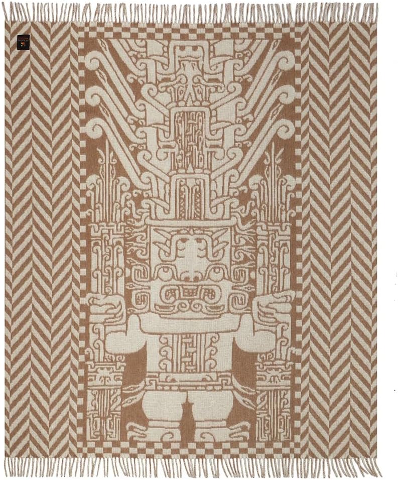Elevate your home decor with our Peruvian Inca Culture Inspired Alpaca Throw Blanket. This luxurious throw blanket features unique designs inspired by the ancient Inca civilization, including Wiracocha God, The Raimondi Stele, and the Tumi Knife, woven into the fabric with exquisite detail.The Wiracocha God design depicts the revered Inca deity, known as the creator of all things and the supreme being of the Inca religion. With intricate patterns and vibrant colors, this design represents the power and spirituality of the Inca culture.The Raimondi Stele, also known as The Raimondi Monolith, is a famous artifact discovered in Peru and considered one of the most important representations of the ancient Moche civilization. This design showcases the intricate carvings and symbolism found on the original stele, including depictions of human figures, animals, and ceremonial scenes.The Tumi Knife was a sacred ceremonial tool used by the Incas for rituals and sacrifices. The design on the blanket showcases the unique shape and elaborate decorations of this revered symbol of Inca culture, with its distinctive crescent-shaped blade and ornate handle.- Composition: 50% Alpaca, 35% Merino, 15% Synthetic- Soft and warm- Size: 65" x 52"The soft touch and lightweight design of this throw blanket make it perfect for cozy comfort without feeling heavy. Add warmth, comfort, and cultural significance to your home decor with our Peruvian Inca Culture Inspired Alpaca Throw Blanket, which is sure to captivate with its unique design, exquisite craftsmanship, and homage to the rich heritage of the Inca civilization. Order now and experience the beauty and artistry of this one-of-a-kind alpaca throw blanket!