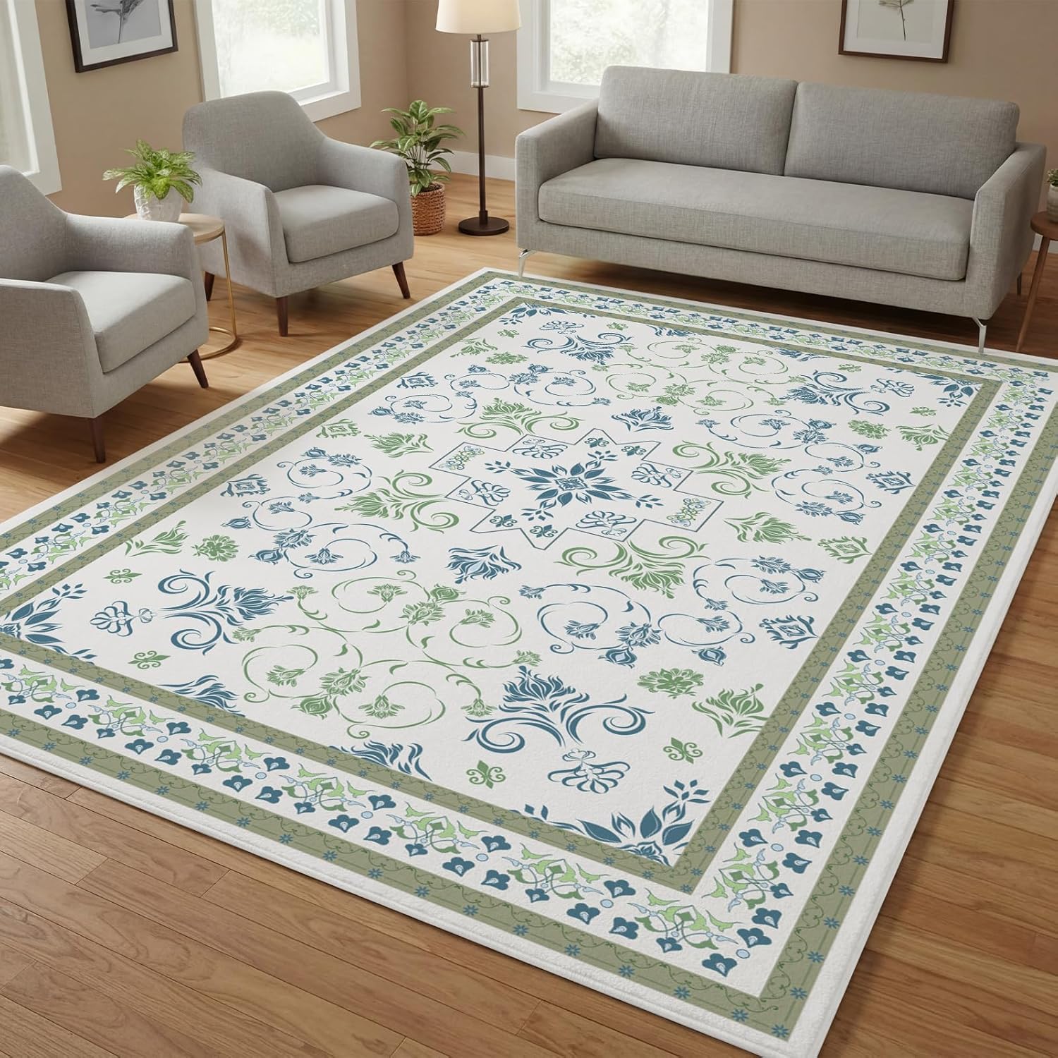 Feature: Durable and Long-Lasting: Our turkish oushak carpet for dining are meticulously crafted with reinforced edges and a stain-resistant fabric that effectively protects against liquid splashes and dirt. They maintain their beauty even in high-traffic areas, remaining fluffy and like new even after years of use. Easy to Maintain: This large oushak area rug not only enhances comfort but also boasts excellent stability. It's simple to use and easy to clean. Just regular vacuuming and spot cleaning when necessary will keep it looking pristine, making it ideal for everyday use. Specifications: Material: velvet Color: blue and green Size: 4x6 ft Package Includes: 1x Oushak rug Warm Notice: Please allow slight size errors due to manual measurement. Please check the size carefully before ordering. There might be a little color differences due to the monitor, please refer to the physical items